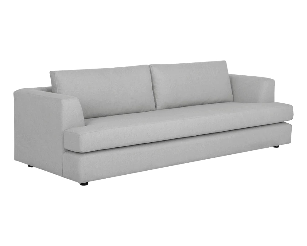 This sustainable sofa offers soft bench seating and double cushioned armrests for extra comfort and dimension.